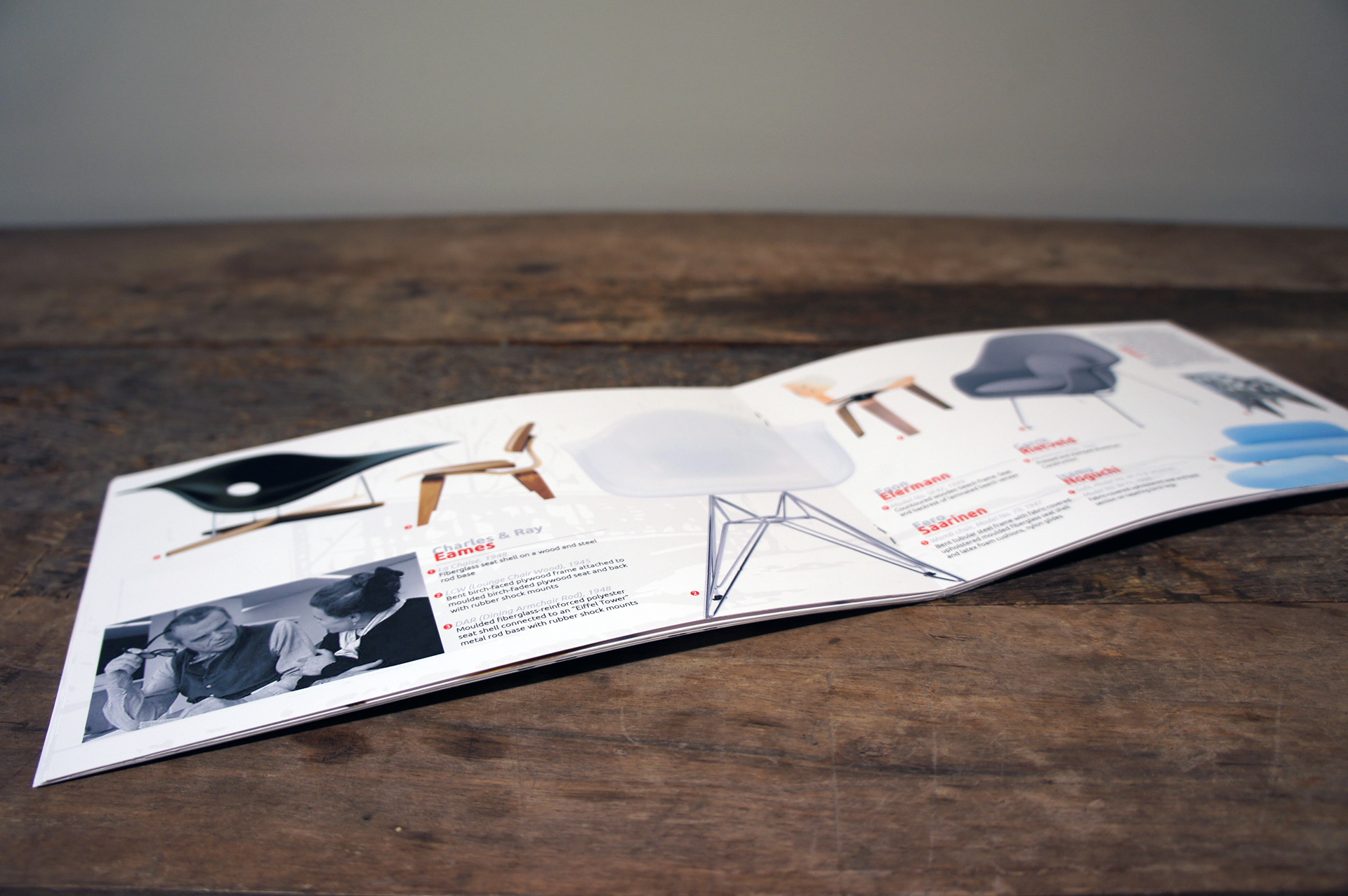 This is a student project of a leave-behind pamphlet promoting A Century of Seating - 100 Years of Chair Design for LACMA. The target audience is anyone interested in art, design, architecture, interior design, and furniture enthusiasts. The pamphlet is designed to give the public a sample of the designers, and furniture which will be displayed in the grand tradition of, and in keeping with, previous critically acclaimed LACMA exhibits.